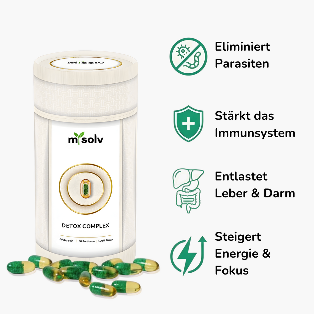 Der mysolv 4in1 Complex nutzt eine intelligente Dual-Technologie: ausgewählte Pflanzenstoffe wie Carvacrol und Thymochinon (aus Oregano- & Schwarzkümmelöl) stärken die Abwehr, während spezielle Algen-Mikroperlen im Verdauungsbereich wirken und eine gesunde Darmflora unterstützen.